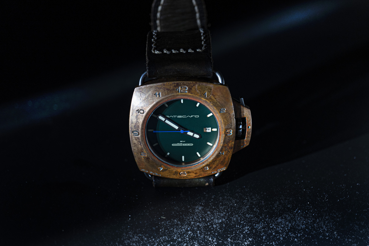 BATISCAFO Quadro45 – винтажные дизайнерские часы в стиле military в массивном бронзовом корпусе. Лимитированная серия 300 единиц.