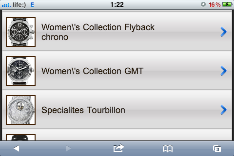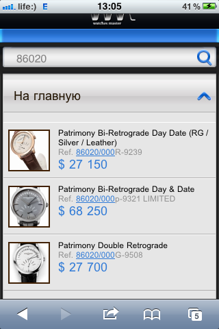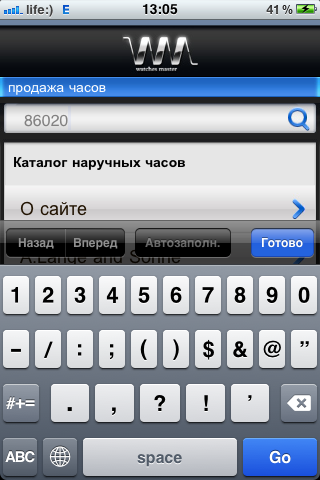 Эта тенденция не могла обойти и отрасль наручных часов, например, большинство серьезных часовых брендов потрудились создать занимательные приложения для самого популярного мобильного телефона в мире iPhone. Приятно, что и имеющая серьезную репутацию в Украине и России компания Watches-Master пошла навстречу любителям гаджетов, выпустив мобильную версию своего ресурса watches-master.com. По сути это первый русскоязычный часовой сайт для мобильных устройств. Давайте попробуем разобраться, что из этой идеи вышло.