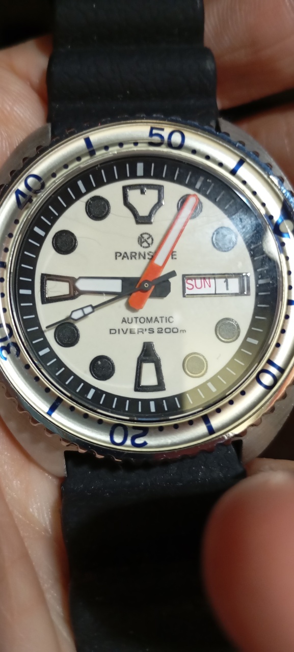 Есть часы, теоретически, возможно, это сделано на Seiko nh36, точно пока не знаю. Так было заявлено у продавца. Идут достаточно точно, автоподзавод шикарный, стоп секунда присутствует, заводная головка на резьбе. Т.е. меня всё более чем устраивает, обошлись с али в $72. Такие дела... Но вот календарь, день недели, вот полюбуйтесь –