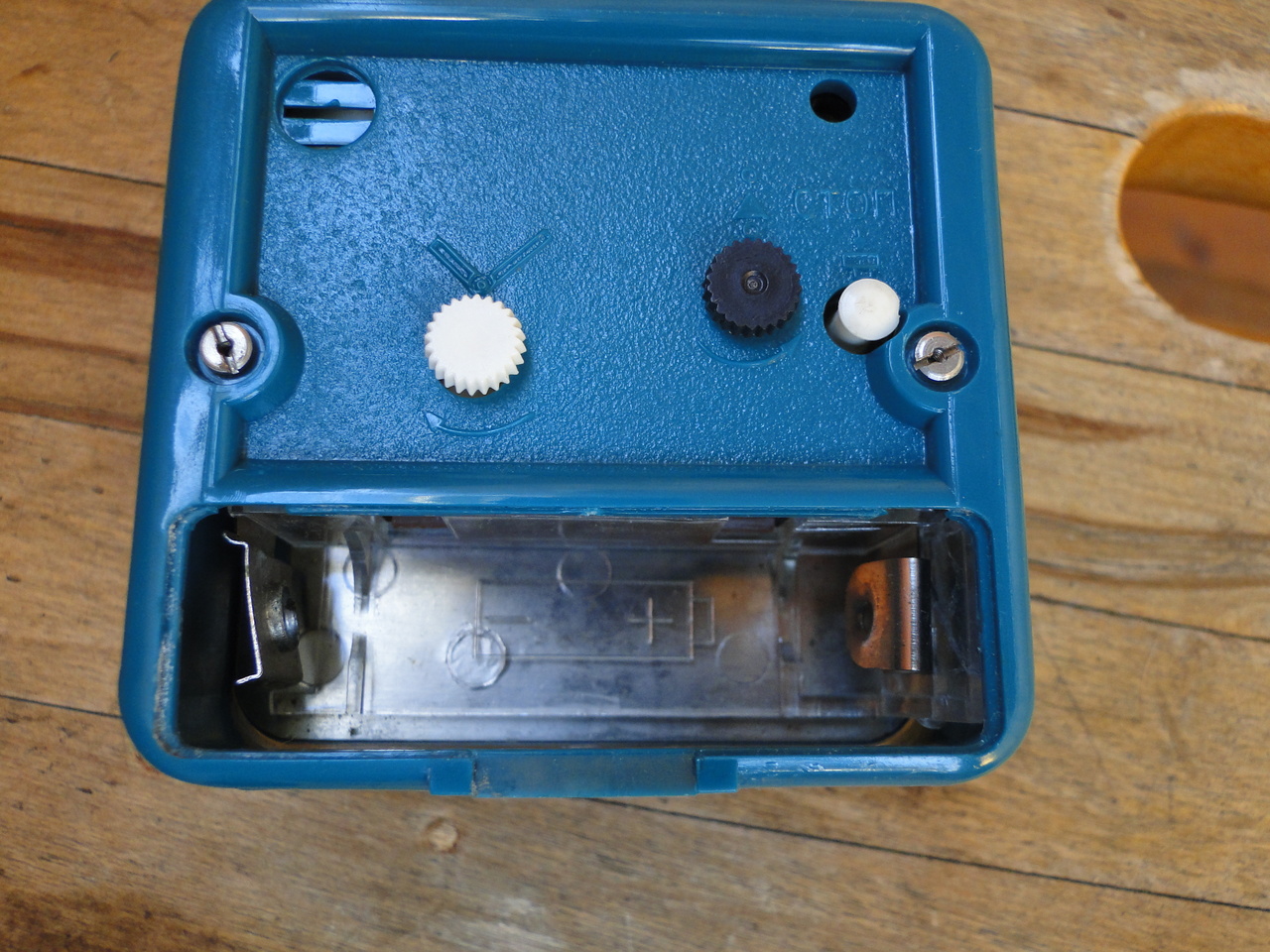 Опять мой фотоаппарат наотрез отказался точно передавать цвет корпуса - не в первый раз уже с советскими пластиковыми корпусами - будильник зелёный, а не голубой.