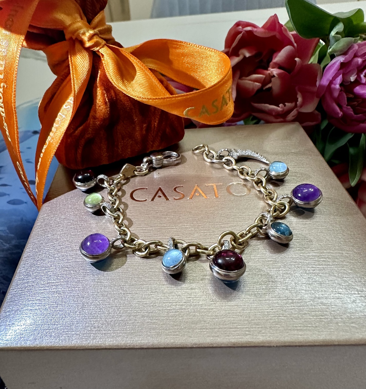 БРАСЛЕТ CASATO С БРИЛЛИАНТАМИ, ТОПАЗАМИ , АМЕТИСТАМИ, ХРИЗОПРАЗАМИ , ГРАНАТОМ , торг/отправка