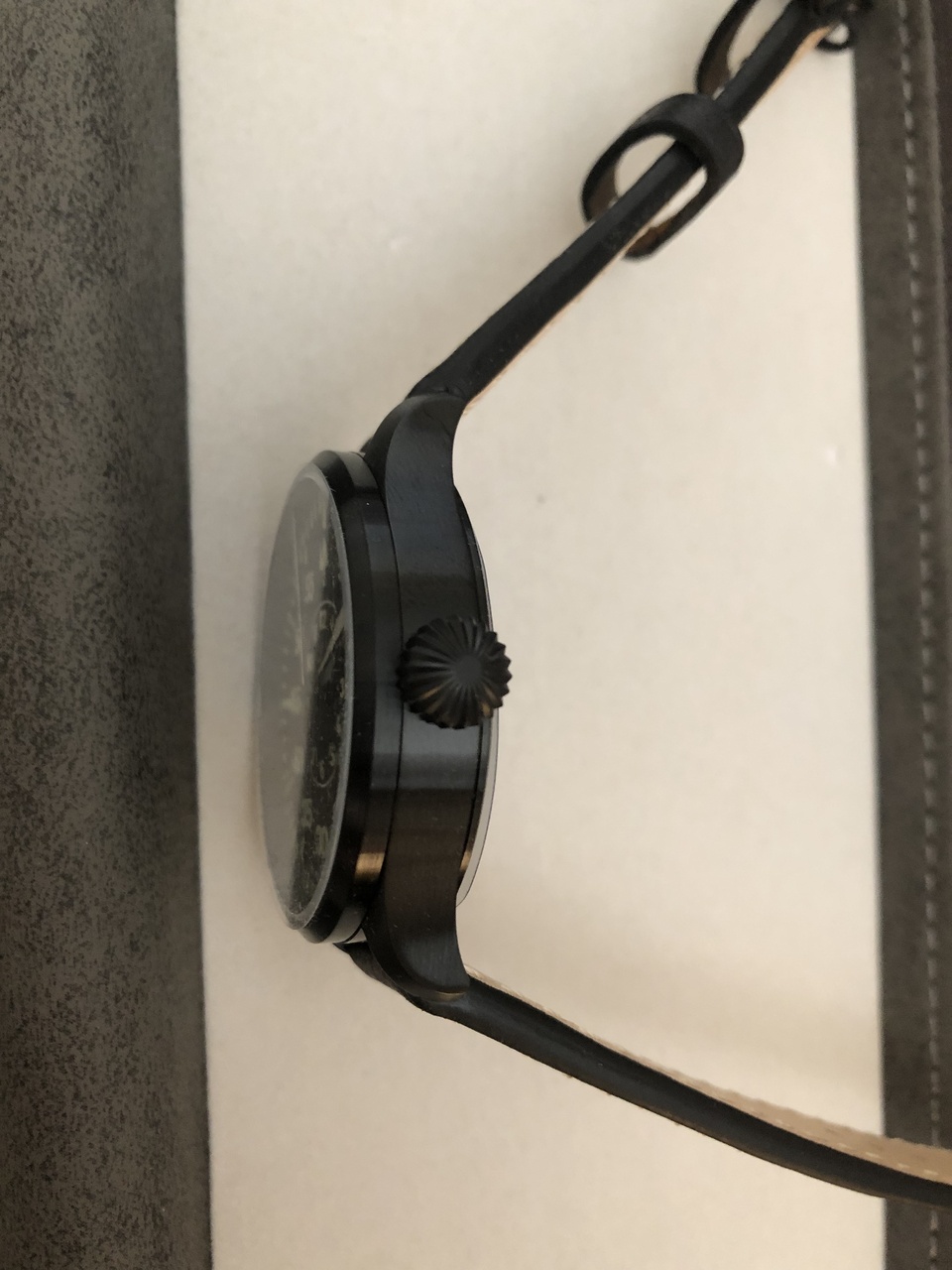 Пилотская классика с циферблатом типа B (Type B-Uhr) в черном цвете на черном ремешке.