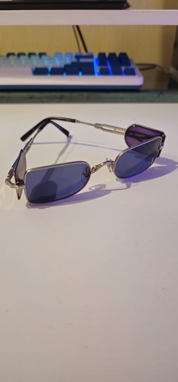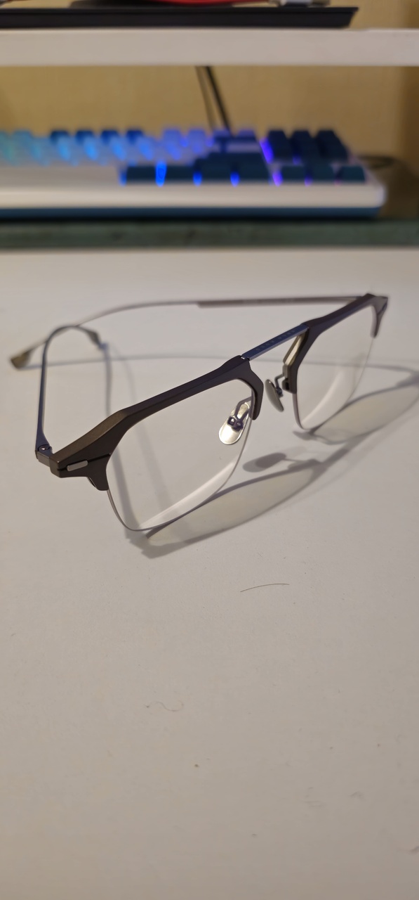 Из интересного: один из двух супер топовых японских брендов, чуть более стильный и артистичный чем Masunaga, по крайней мере чем их стандартная линейка; съемные шоры; титан с тонкой отделкой; дизайн вдохновлен готической архитектурой Парижа; синяя узкая линза, поэтому слишком практичные, зато очень стильные и запоминающиеся. Из минусов: старая версия, поэтому носоупоры пластик, сейчас титановые; шоры тоже могут быть в виде титановой сетки.