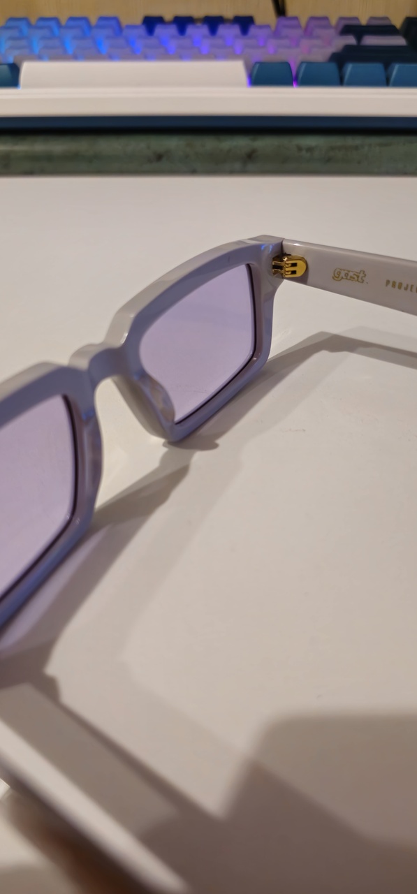 Gast Vov Sky. Единственные из оставшихся ацетатников, были еще одни и тоже Gast. Из интересного: достаточно толстый, хорошо полированный ацетат; финишная полировка вручную, поэтому видны грани и углы; задний антиблик; нормальные петли для своей цены; хороший баланс очков в целом - узкие и не особо практичные + синяя линза 1 категории, подходят для прогулок в пасмурный день, когда не хочется надевать Матсуду.