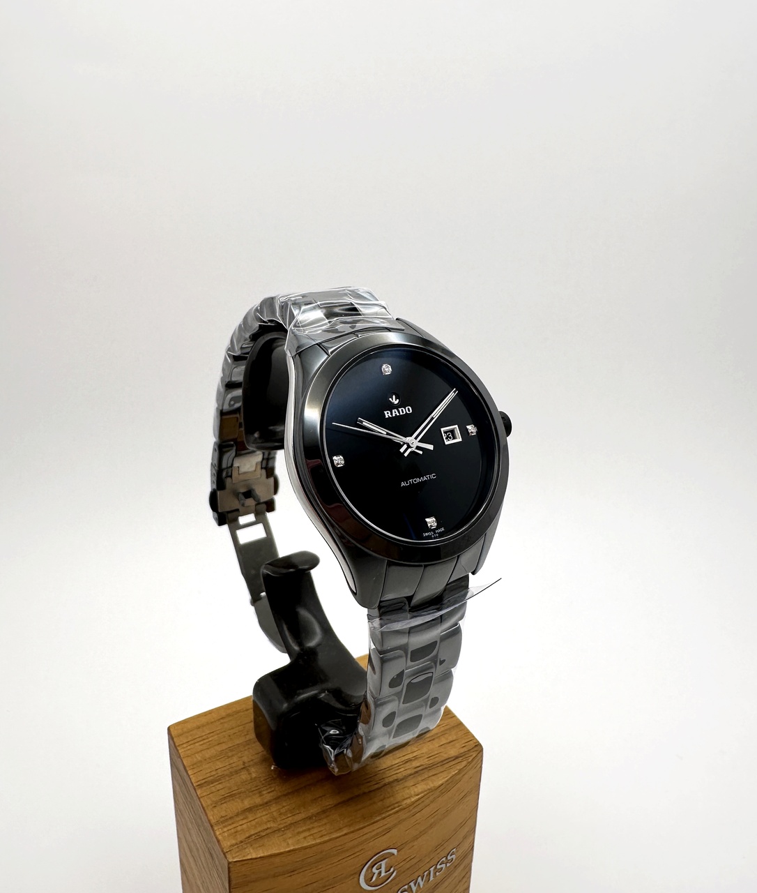 В продаже стильная модель от швейцарской компании RADO - это аристократические утонченные швейцарские часы из коллекции HyperChrome, которые имеют выдержанный в черном цвете дизайн всех составляющих элементов и накладных стального цвета боковин на корпусе. Rado Hyperchrome Automatic Diamonds с бриллиантовыми метками на циферблате в размере корпуса 36 мм изготовлены из высокотехнологичной плазменной керамики, а каучуковая заводная головка не даст вашим пальцам соскользнуть при заводе.