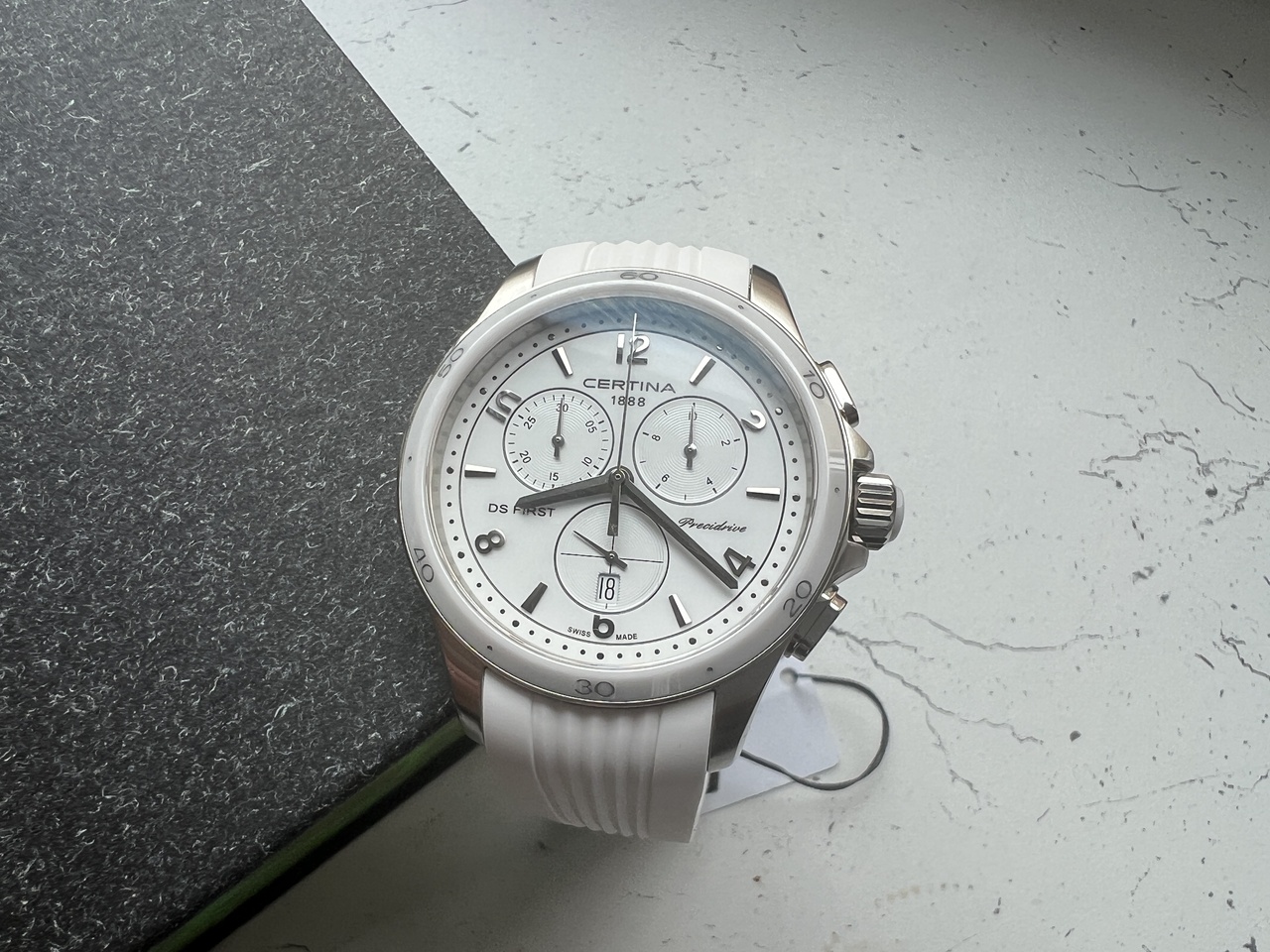 [Женские] Certina DS First Ceramic Chrono // Белые на белом каучуке