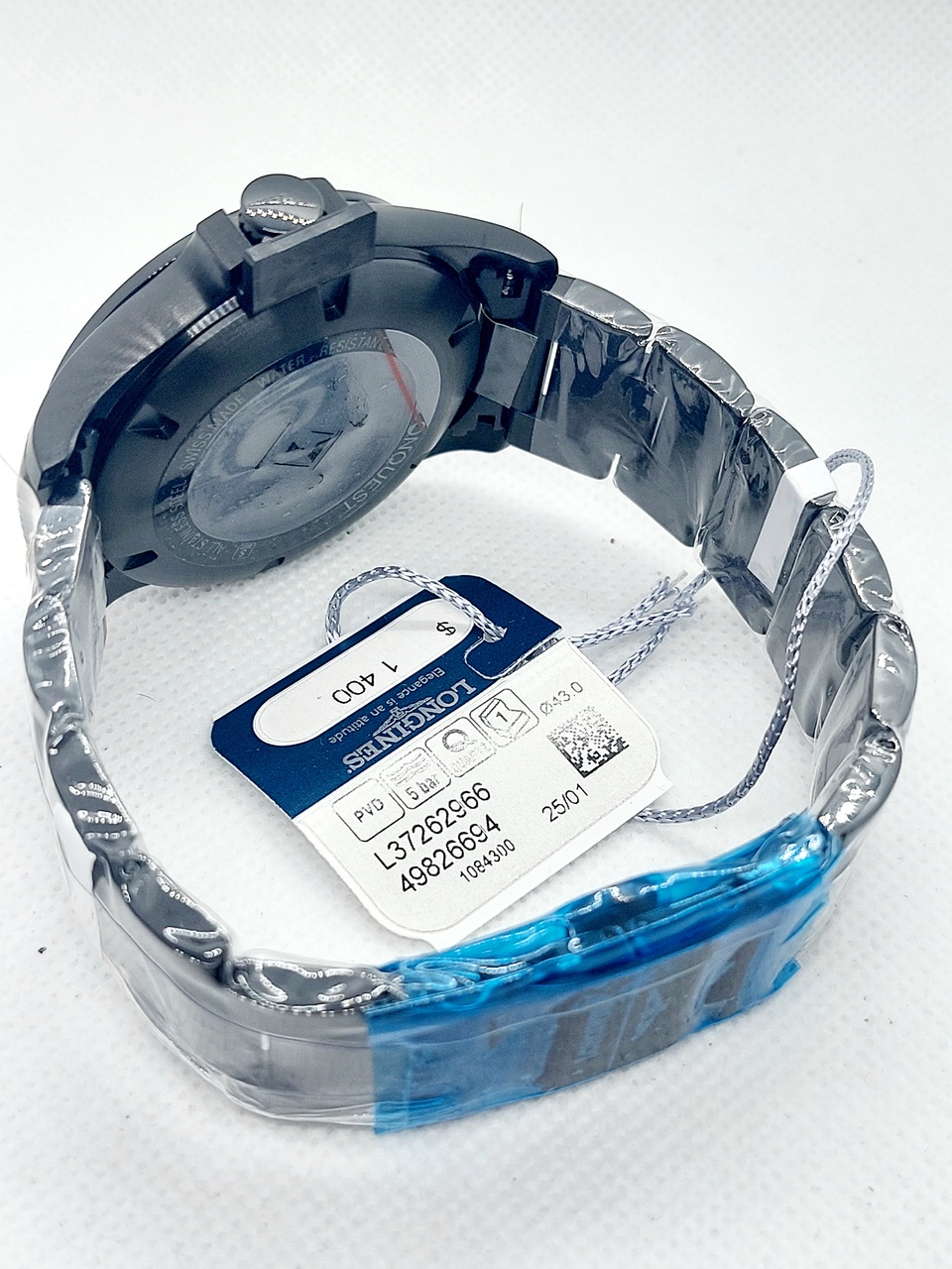 МУЖСКИЕ LONGINES CONQUEST V.H.P. D-43MM ЧЕРНЫЙ КОРПУС СИНИЙ ЦИФЕРБЛАТ ЧЕРНЫЙ БРАСЛЕТ