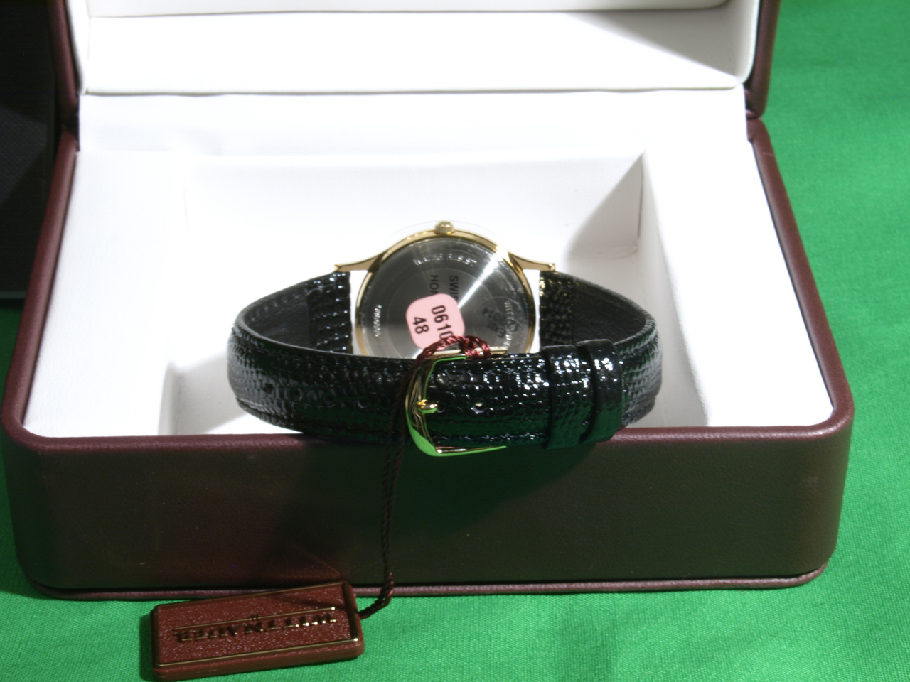 Представляю Вашему вниманию мужские швейцарские часы Wittnauer. Модель 15D01 - абсолютная классика, черный циферблат, позолота по корпусу и стрелкам, один бриллиант на отметке 12 часов. Механизм - собственной мануфактуры Wittnauer, Швейцария. Минеральное стекло в специальном покрытии от царапин; водозащита - 30 метров. Диаметр корпуса - 30 мм, толщина - 7 мм. Черный кожаный текстурированный ремешок на классической застежке-пряжке. Часы в полном комплекте, коробки + инструкция/гарантия.