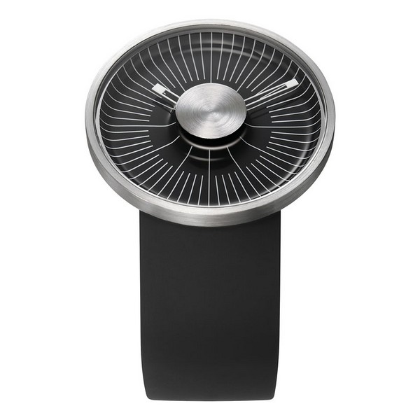 Только смелые линии от центра циферблата к самому краю корпуса и никаких чисел. Ведь продуманный «радианный» узор позволяет и без всяких там цифр определить время буквально с первого взгляда, причем безошибочно. Задумка такова, чтобы hacker watch было легко и приятно пользоваться «на ходу», затрачивая минимум времени на то, чтобы его же, время, узнать. Циферблат «посажен» на элегантный ремень без единого винтика или шва, что, по мнению Майкла Янга, «добавляет строгому геометрическому дизайну некой деликатности». А металлический диск посередине обеспечивает конструкции надёжную защиту в повседневной носке.