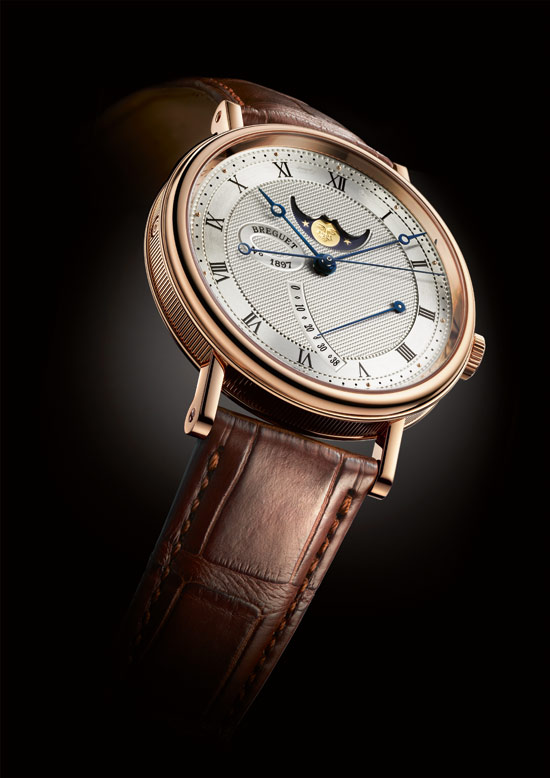 Компания Breguet представляет еще одну новую модель из коллекции Classique – часы Classique 7787 Moon Phases. Они отличаются тем, что прекрасно подходят как мужчинам, так и женщинам, поскольку выпущены в двух вариантах (диаметром 39 мм и 36 мм). Предлагаются две модификации – у каждой циферблат гравирован вручную на гильоширной машине – из белого золота и из 18-каратного розового золота. Две модели из 18-каратного розового золота будут также выпущены с эмалированным циферблатом в стиле
