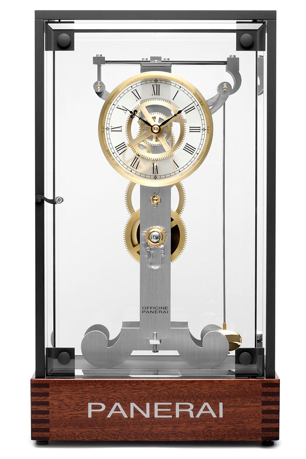 Удивительное творение Officine Panerai практически в точности воспроизводит модель Порчелотти. Размеры настольных часов (высота 35,6 см, ширина 18,5 см и толщина 11,1 см) соответствуют цифровым значениям чертежа итальянского часовщика и воспроизводятся в других, весьма немногочисленных достоверных реконструкциях. Каркас маятника состоит из двух основных пластин, которые, в отличие от прототипа Галилея и чертежа Порчелотти, выполнены не из железа, а из латуни, и покрыты сплавом никеля с палладием. В верхней и нижней части пластины соединены крестовинами и закреплены традиционным способом, при помощи конусных штифтов. На первой, верхней крестовине помещены спусковой механизм и подвес маятника, а вторая крестовина соединяет между собой нижние части пластин, формирующие четыре спиралевидные ножки.