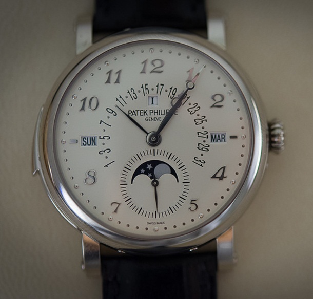 Хорошо знакомая территория, поскольку принцип устройства в модели 5270 был сохранен в 5204. В данной модели сделан более четкий и читаемый циферблат с дополнительными окошками, через которые отображаются четыре показателя: дни и месяцы в традиционном стиле, високосный год и индикатор день/ночь, который расположен внутри скромных круглых апертур в нижней части циферблата. Окошко даты расположено на отметке 6 часов, что делает его хорошо читаемым.