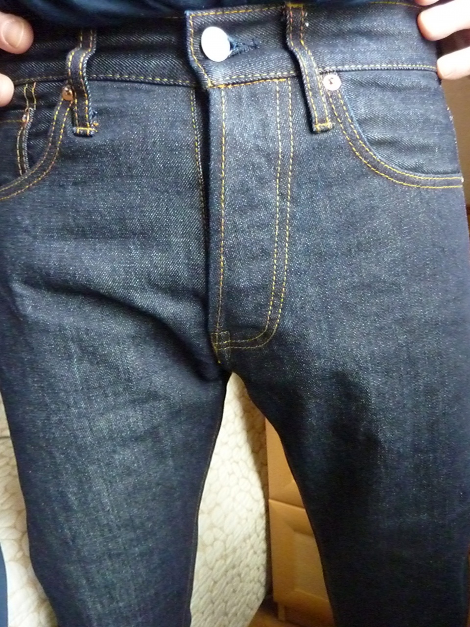 Джинсы оказались вполне добротные, аккуратненько пошитые, деним плотный и мягкий, показался даже плотнее заявленных 13 коз (но, это до первых стирок, полосканий), one wash. Цвет стандартный, может чуть темнее обычного, материал показался похожим на каихаровский (ну, это личное восприятие), без слабби, но и без "полированной" поверхности.