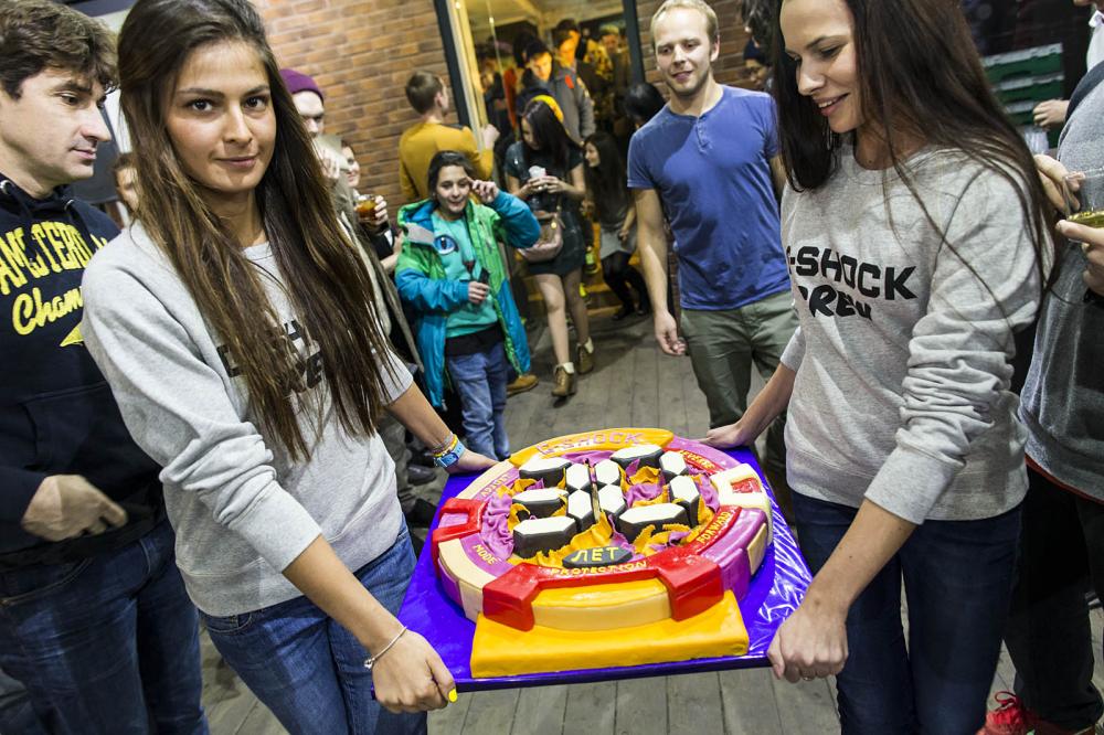 праздничный торт в честь юбилея бренда G-Shock и открытия G-Shock Store 6 декабря 2013 года на­ территории дизайн-завода Flacon (Москва)
