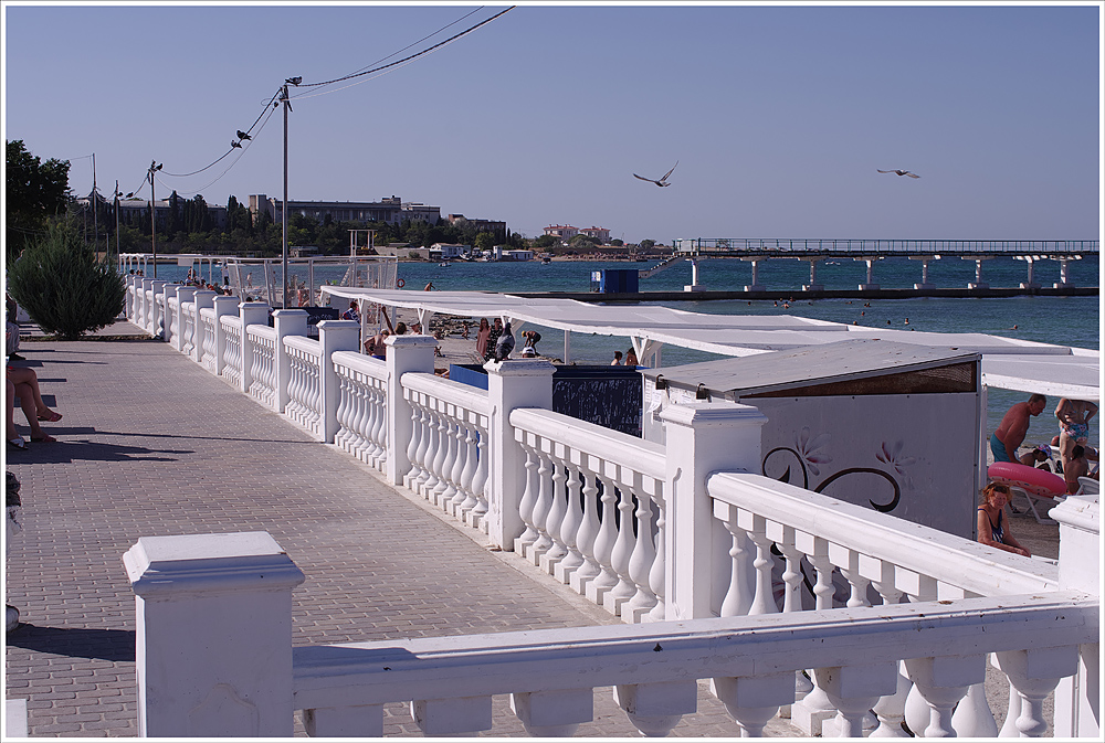 Потом его эксплуатировали в этой фирменной местечково-жадной манере. То есть рестораны (хреновые) были, прокат пляжного фуфла был, а вот уборка и благоустройство - дело десятое. Грязно было от водорослей, воняло от редко вывозимых помоек. Выжженная "зелень". Ямы на единственной дороге. Разбитые тропинки. Жесть.
