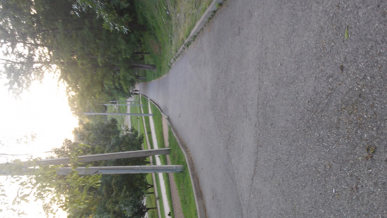 По дорожке от парка к тиру мы катались на великах. Там достаточно круто (перевернутое фото с дорожкой), поэтому притормаживали. Но я на спор покатился без тормозов, прилично разогнался и хорошо приложился. Благо, там тогда была грунтовка. И поделом. Без тормозов, да еще и без головы - печалька...