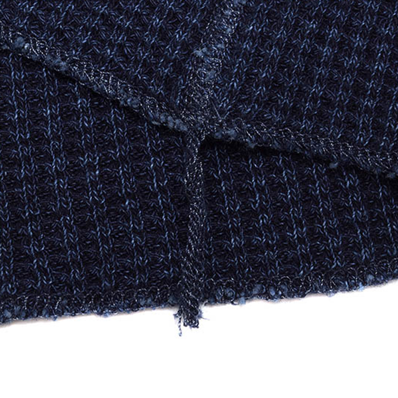 На рукаве традиционно нанесены фирменные "боевые полосы" Момотаро. Здесь так же заметно, что они наносились до окраски изделия индиго.