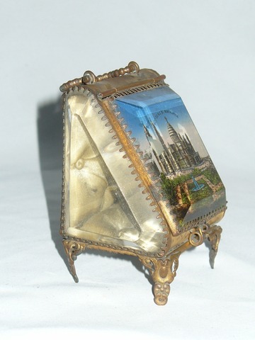 У меня есть такая-же. В семье давно, бабушка в ней какую-то мелочь держала: брошки-колечки, и я думал что она моложе. Есть еще одна, чуть шире и ниже, стекла тоньше, выглядит поквадратнее, ножки просто уголками, золоченая латунь вроде.