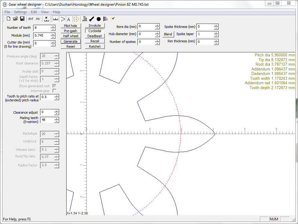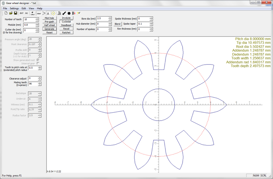 Кстати, зная используемый модуль, будет легко изготовить резец для изготовление недостающего триба, все необходимые данные являются прямо рассчитанным в программе.