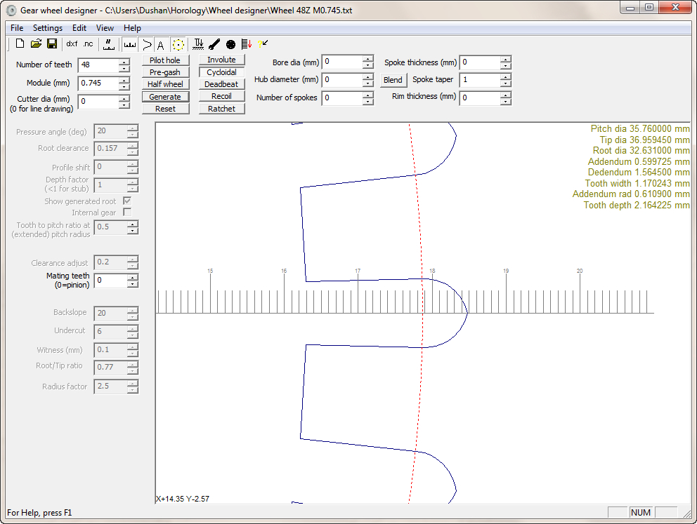 Конечно возможно использовать формулы из инженерных книг, но они обычно сложные и неточные, неудобные и относятся к частным случаям. Данная программа по моему удовлетворяет хорошо точность построения. Я сделал много колес при ей помощи и они всегда зацеплялись правильно, в отличии от тех, что пытался исчислять по формулах...