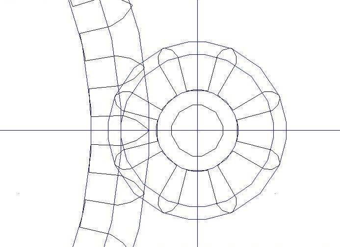 Получаем изображение зубчатой пары с полотном с 96 зубъев и трибом с 8 при помощи етой программы.