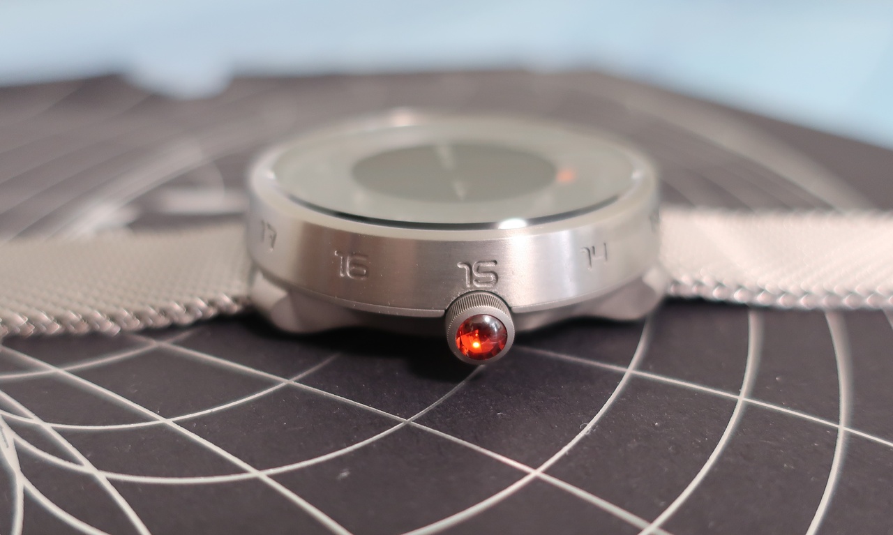 Заводная головка часов Event Horizon с красно-оранжевым кабошоном — отсылка к знаменитому фото