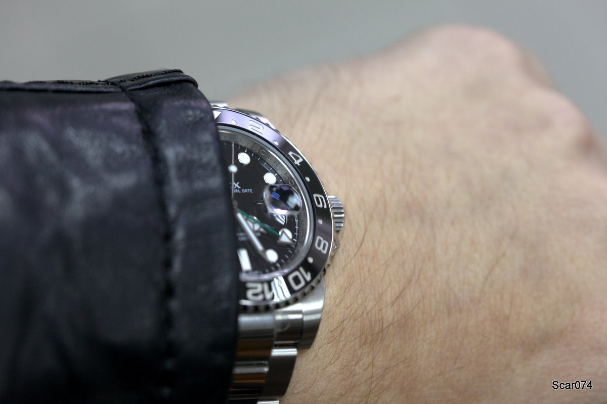 Искал часы на каждый день, но обязательно такие, чтобы престиж и узнаваемость марки, качество, надежность, функциональность сочетались в часах в правильных пропорциях. Не на последнем месте стоял привлекательный внешний вид. Перебрал несколько марок, и благодаря некоторым товарищам на форуме и отсеиванию часовых марок пришел к Rolex. Выбирал из трех моделей Professional серии: GMT2, Expl2, Sub. Нравятся в принципе все, но учитывая свою профессиональную деятельность и тот факт, что две недели в месяц я нахожусь в командировках и мотаюсь по всей стране, решил остановиться на часах со вторым часовым поясом. Так отсеялся Sub, выбор был между белыми Expl2 и GMT2 в стали. Все же внешне мне больше нравятся (все равны, но некоторые равнее!) GMT2, к тому же так срослось, что часы появились у Димы в России, возникла командировка в Москву и накопилась энная сумма блеклых бумажек, в результате я стал обладателем Rolex GMT2 сталь/керамика.