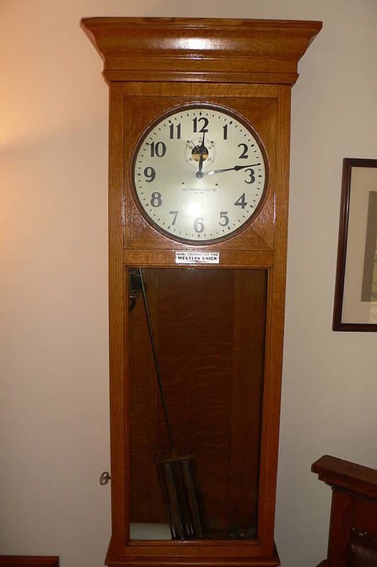 Most of these clocks were actually owned by the SWCC subsidiary and leased to Western Union, who , in turn, rented the clocks and provided a wire circuit to energize the correcting mechanism once daily.