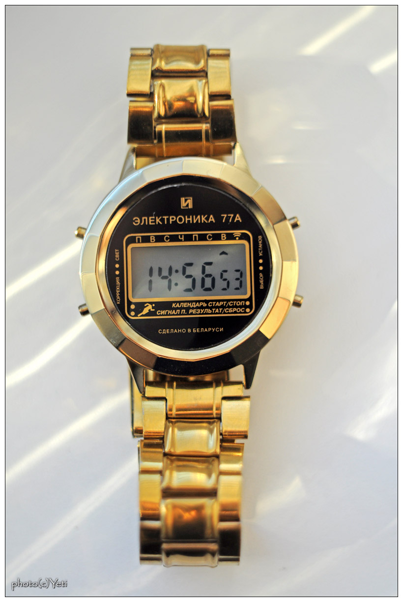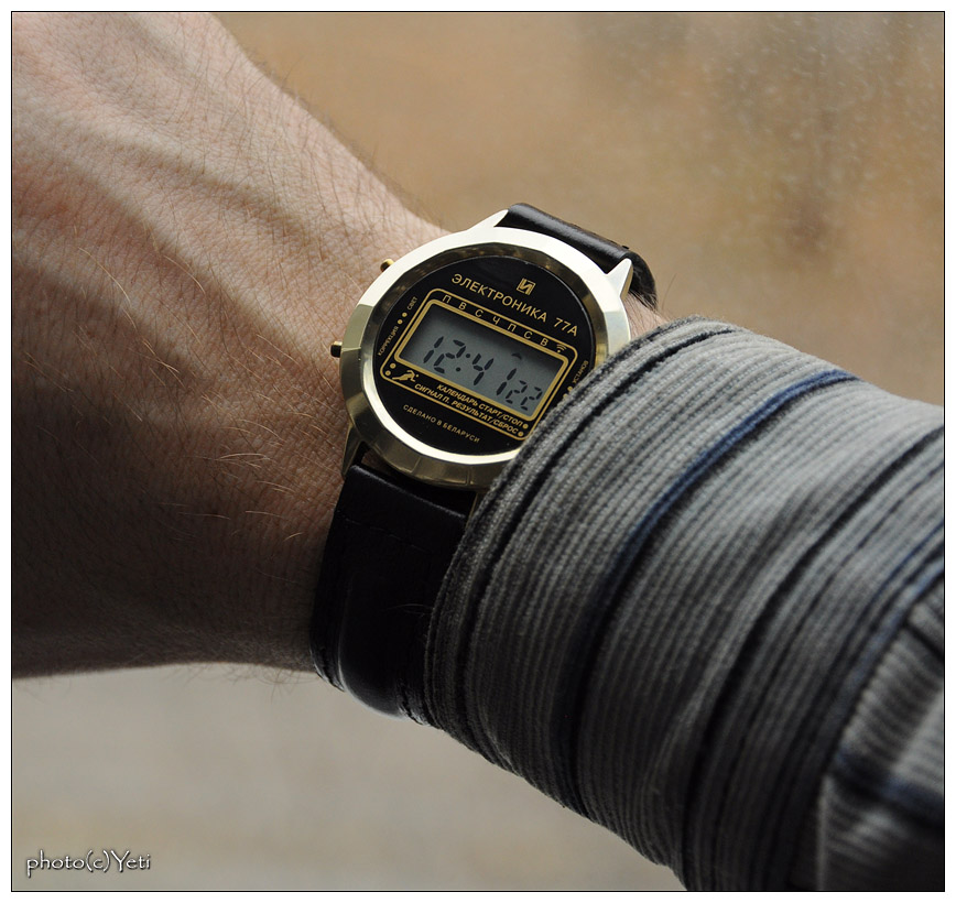 У Электроники-77 ЦНХ нет (но изначальная точность хода у них была хорошая - что-то около +5+7 секунд в месяц) и нет ежечасного сигнала (во всем остальном - аналог "Монтаны"), зато более крупные сегменты и вообще по ним время лучше смотреть. Я поначалу переставлял механизм Э-77 в более привлекательный корпус ЧН-55 (и допереставлялся).