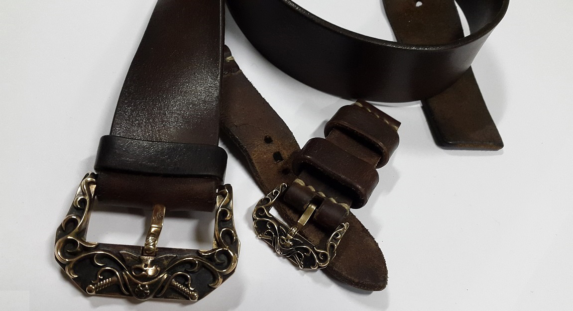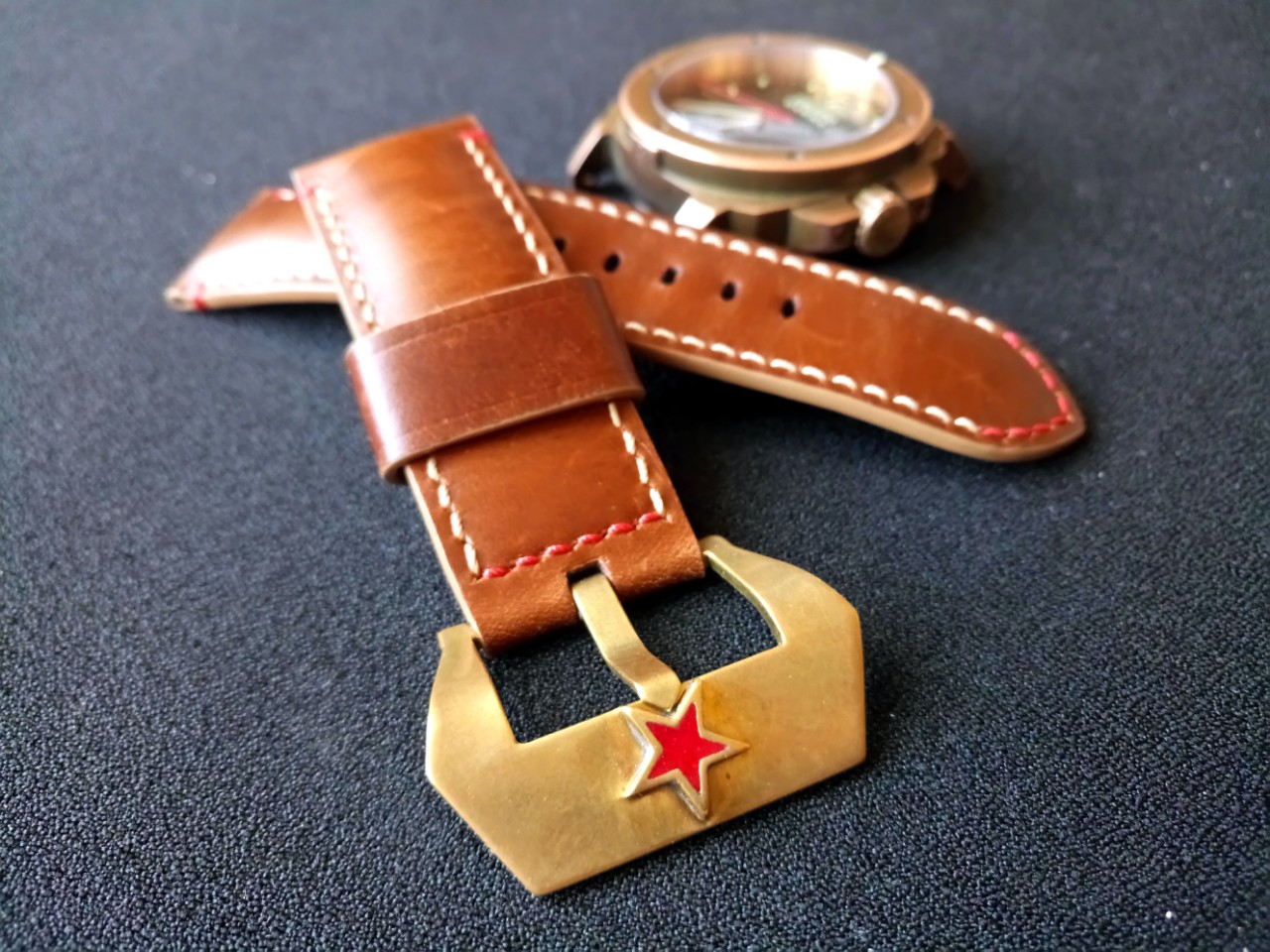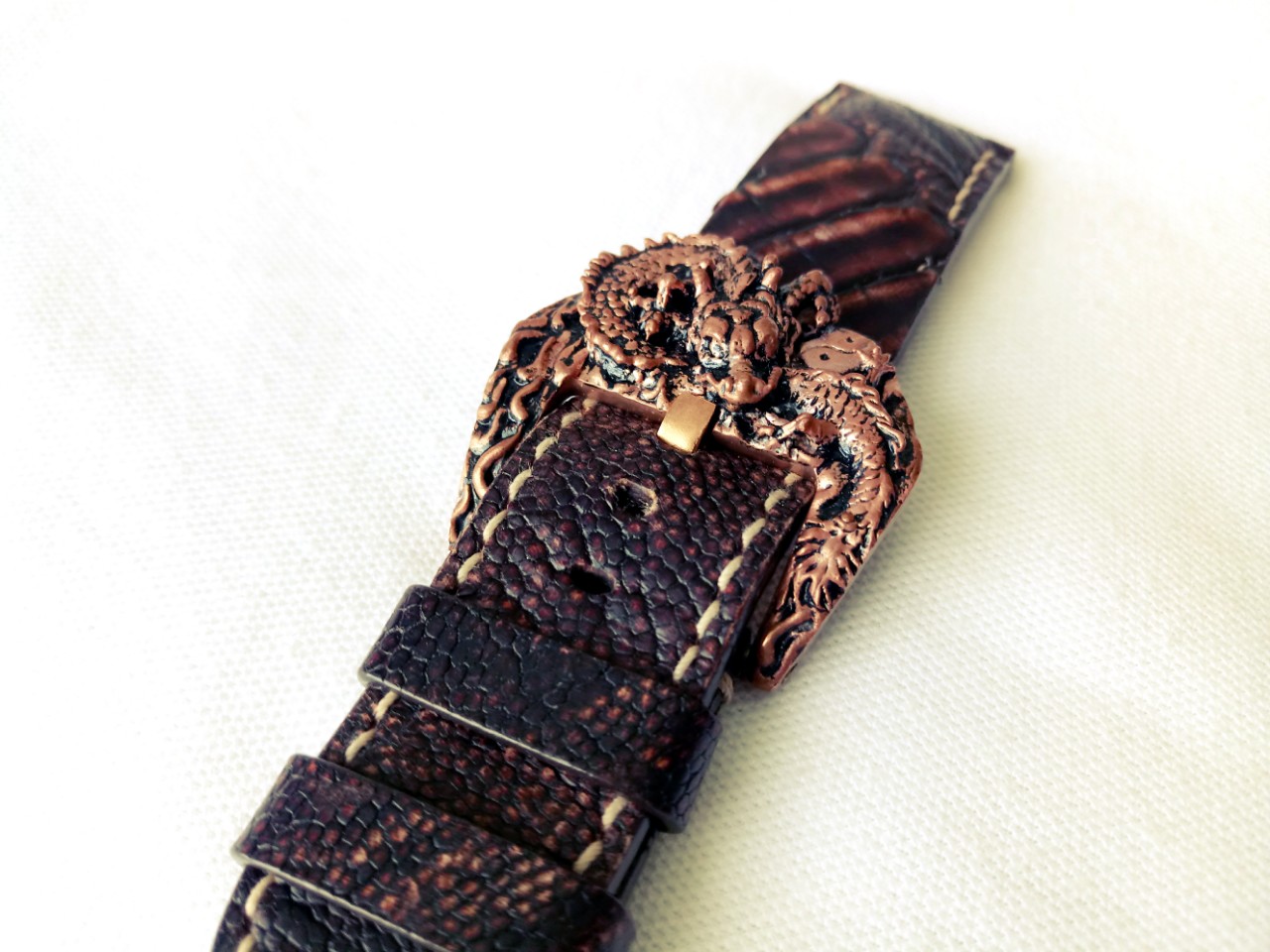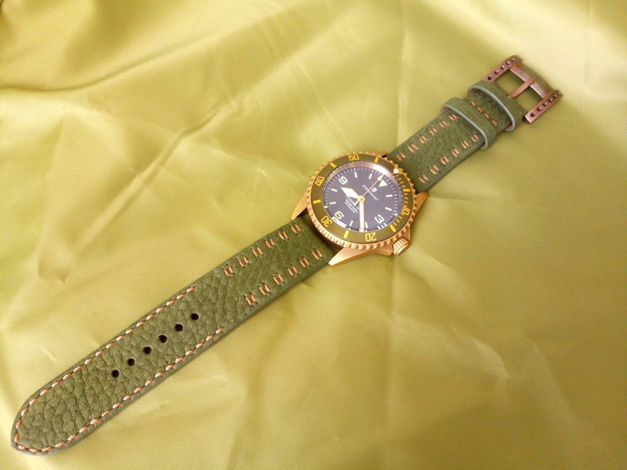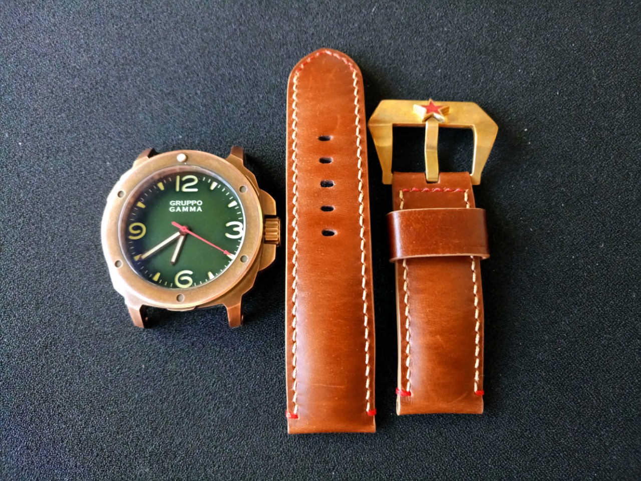| Часы Gruppo Gamma на зеленом теленке, пряжки из меди/латуни в стиле "стим-панк". |