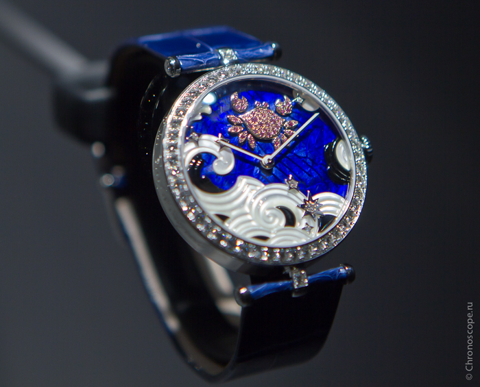 И, наконец, самая обширная коллекция — Lady Arpels Zodiac, посвященная знакам зодиака. В оформлении циферблатов мастера компании прибегали к искусству гравировки, украшали их эмалью, резным перламутром и драгоценными камнями.