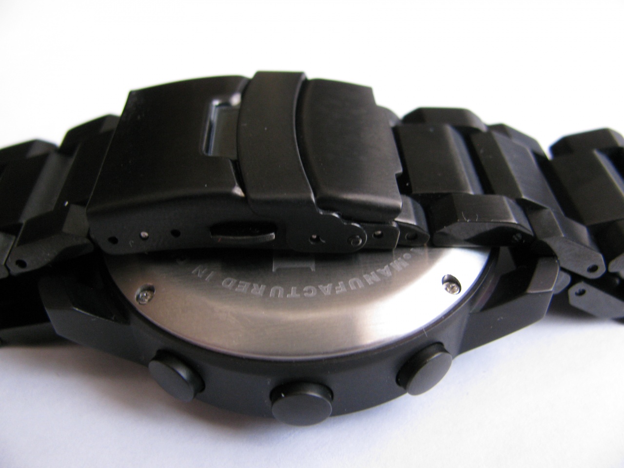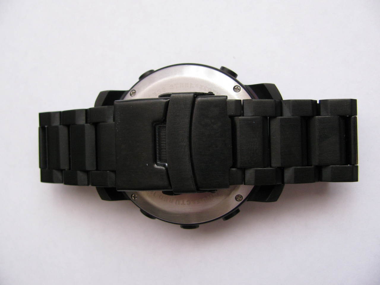Браслет покрашен краской, видны кое где серебристые царапины. Будет облазить со временем, в отличии от часов.