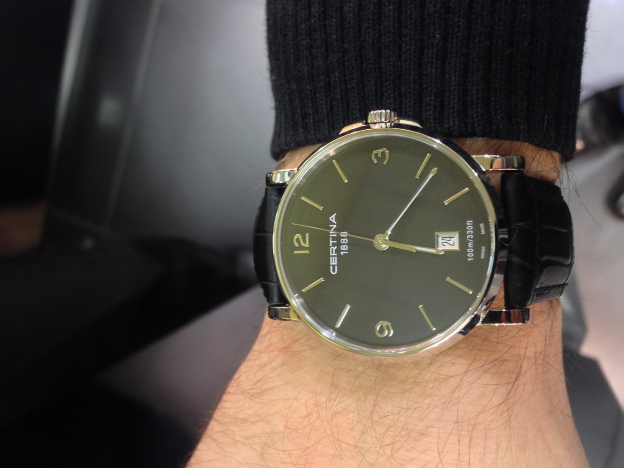 Certina DS Caimano 017.410.16.037.00 оказались совсем не белые как Tissot, а каким то светло серым металлическим покрытием. Трудно будет сочетать с одеждой. Из плюсов - на белом вообще не видно отпечатков пальцев. Черные в этом смысле расстраивают, протирать мобильный, очки, а теперь еще и стекло часов... печалька
