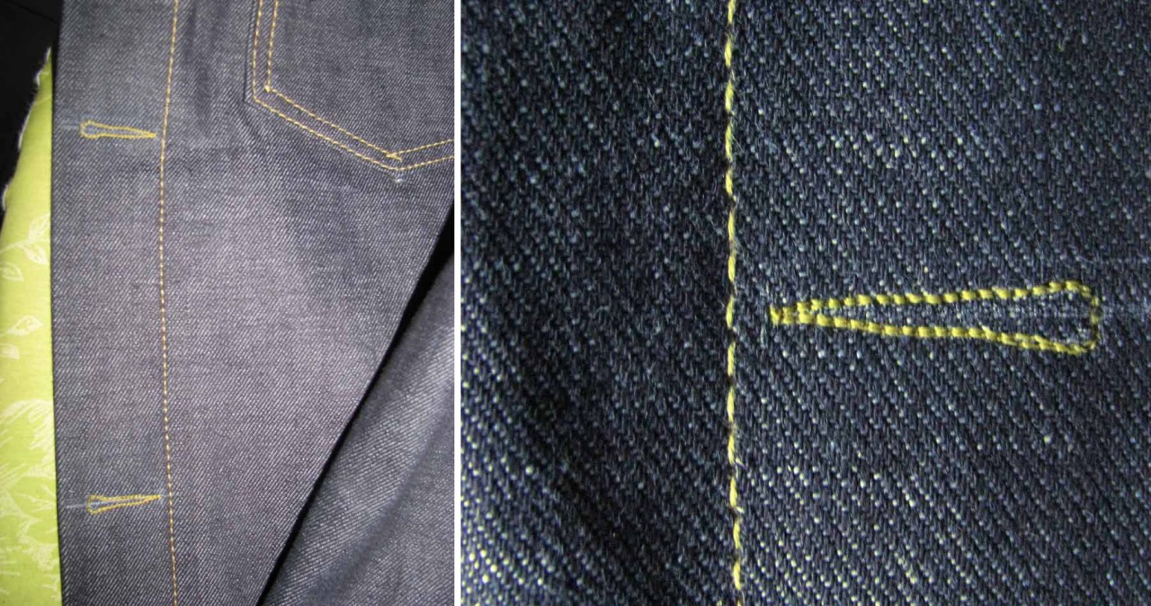 Изготовление петель под пуговицы хотел заказать в ателье. Но в ателье города не оказалось нужной петлеобмёточной машинки. Пришлось петли делать вручную. Посмотрел видеоуроки, попробовал, результат не понравился. Посидел, поэкспериментировал, сделал по-своему. Сначала наметил и положил двойную мелкую строчку
