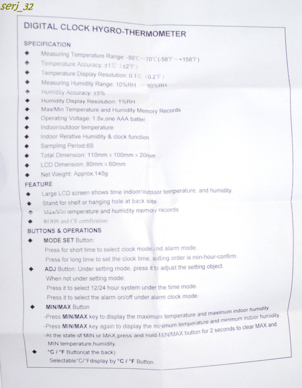 Предлагаю Вашему вниманию быстрый обзор термометра с часами