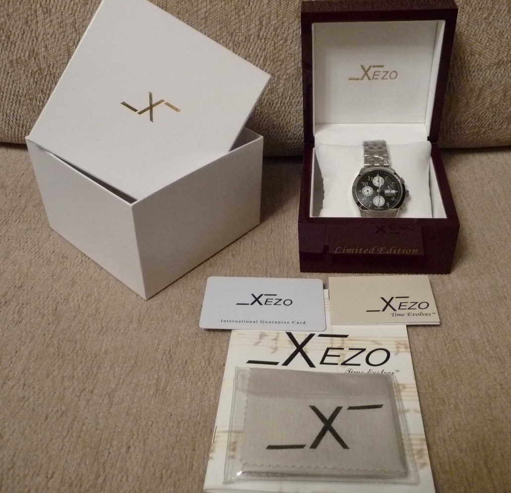 Новые в заводских плёнках и в полном комплекте швейцарские XEZO Tribune Chronograph, DAY/DATE.
