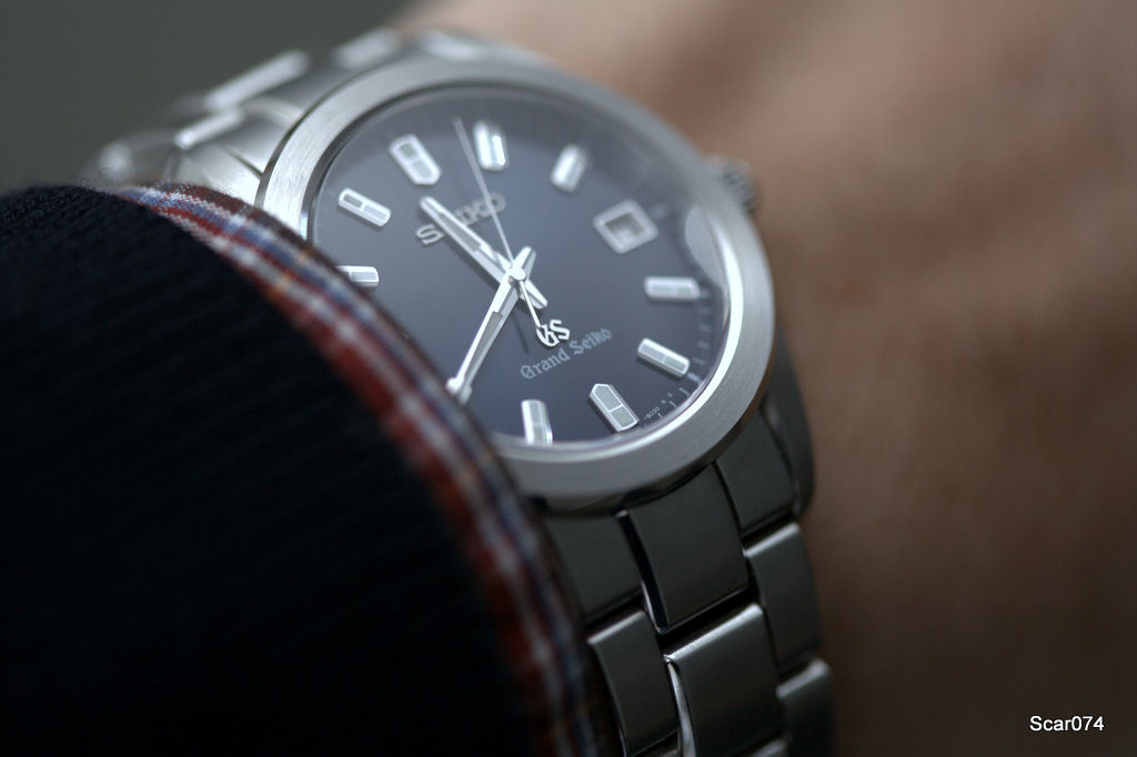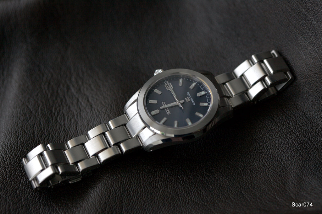 На форуме уже очень много говорилось про филигранную обработку всего, что находится на циферблате: четкость граней полированных часовых меток и стрелок впечатляет. Нет ни намека на нарочитую грубость присущую некоторым моделям Seiko, все очень изящно и аккуратно, но мужественно. По виду, в принципе небольшие часы, вряд ли язык повернется назвать женскими. Изящные мужские часы. На циферблате традиционно присутствует готическая вязь GS и Grand Seiko.