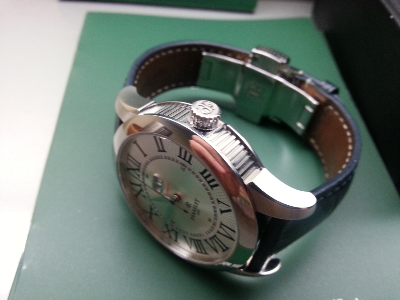 Часы полностью укомплектованы. Были в использовании немногим более года и находятся в прекрасном состоянии. Родной коричневый крокодил даже не одевался, сразу был докуплен темно-синий кроко, его и юзал. В целом отличные очень качественніе часы, не на эти деньги т.к. и на вид и на ощупь выглядят дорого.