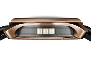 Поставляется на кожаном ремешке с застежкой из нержавеющей стали или из 18-каратного розового золота.