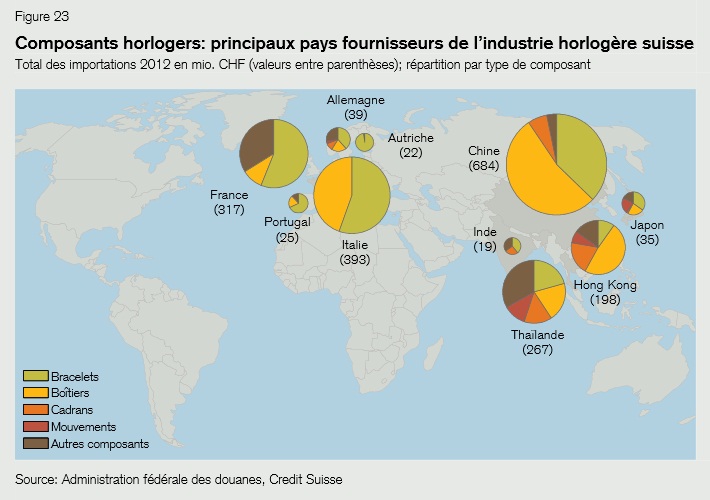 В результате, за период с 2009 по 2012 год число производителей уменьшилось на 7%. В большинстве случаев их исчезновение с рынка связано с поглощением более крупными игроками. Всего с 2000 года основные швейцарские часовые группы купили 49 поставщиков браслетов, циферблатов, корпусов, часовых механизмов и других комплектующих. Credit Suisse опасается, что исчезновение мелких производителей приведет к уменьшению конкуренции и, как следствие, к отказу от инноваций.