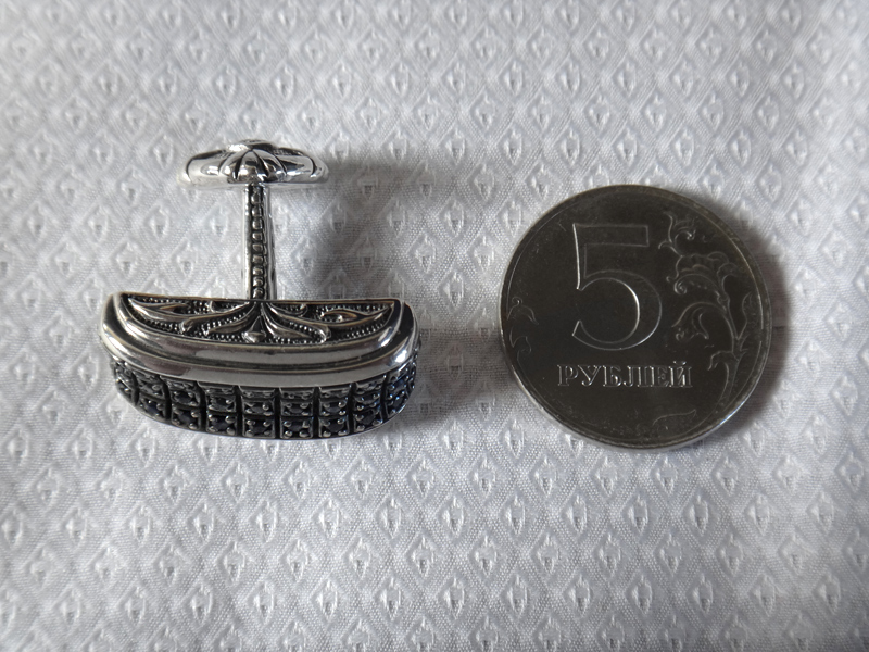 Запонки крупного размера и относятся к топовой линейке этой марки, выполнены из серебра 925 пробы с черными сапфирами.