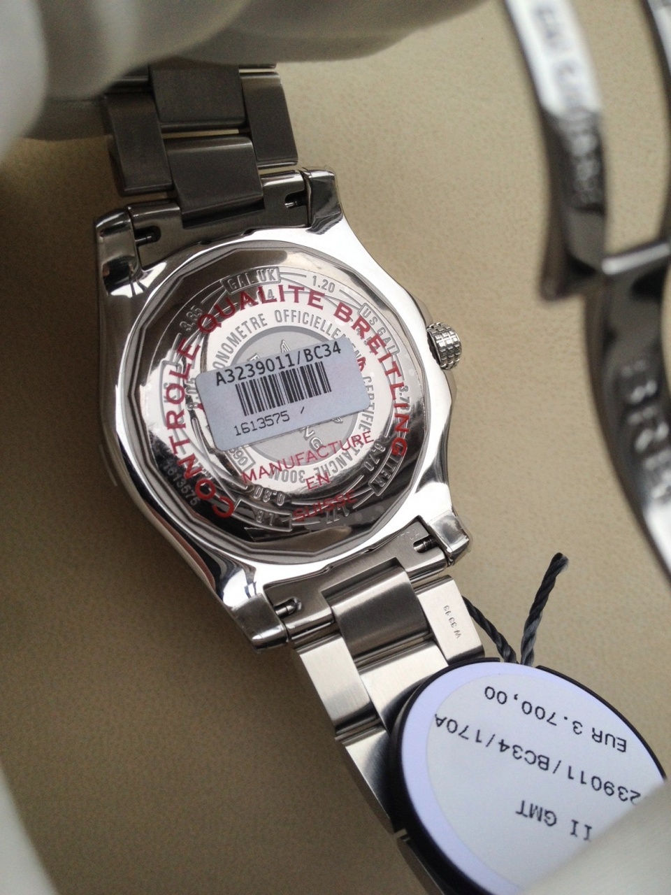 Комплект: коробка, кожанный чехол, часы, инструкция, жидкокристаллическая гарантийная карта, сертификат хронометра, бирка