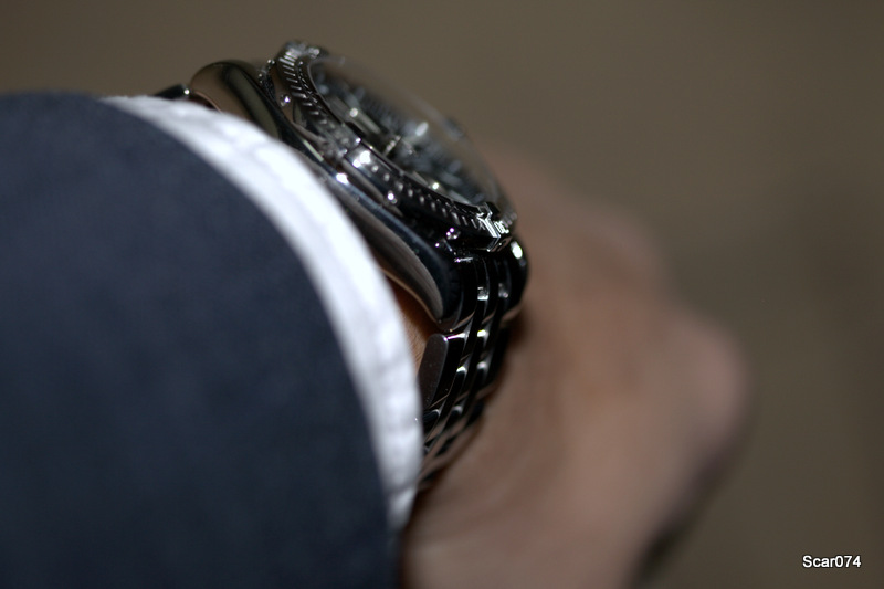 Часы безусловно обращают на себя внимание, опять же благодаря размерам они часто выползают из под рукава и нахально лезут окружающим в глаза. Хронограф сам по себе всегда заметен благодаря пушерам, здесь же «рожки» пушеров дополнены утонченностью отделки корпуса и стильным сочетание элементов и расцветок часов.
