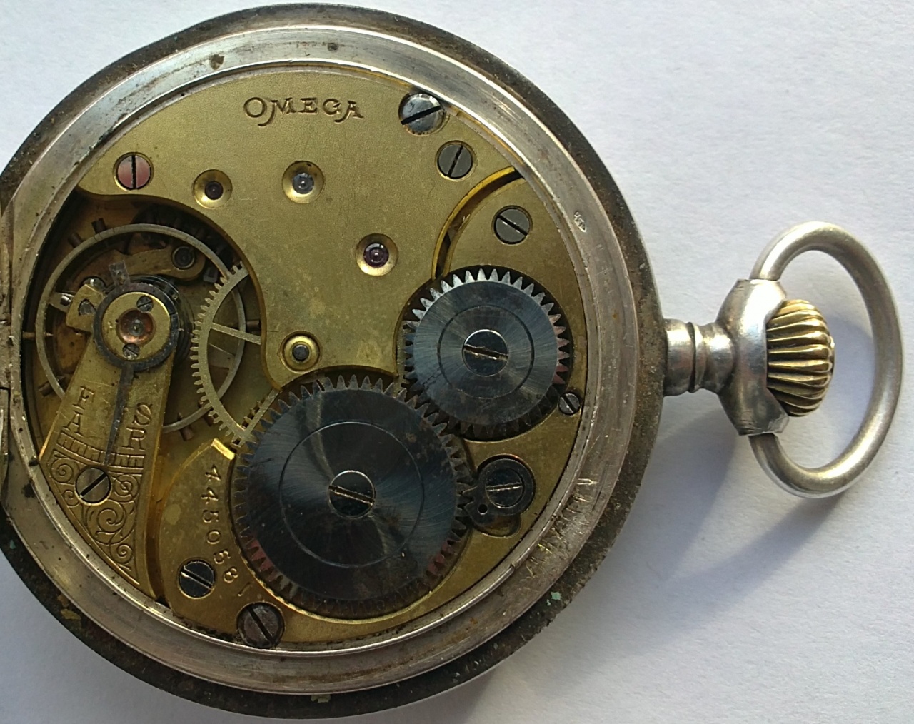 Сохранность корпуса практически идеальна, нет сколов, вмятин и дарственных надписей, лишь только естественные царапинки, патина и загрязнённость. Циферблат тоже без изъянов. Не на ходу, но сохранность механизма хорошая, заводная головка прокручивает стрелку и что пытается завести, думаю, что починить не составит проблему.