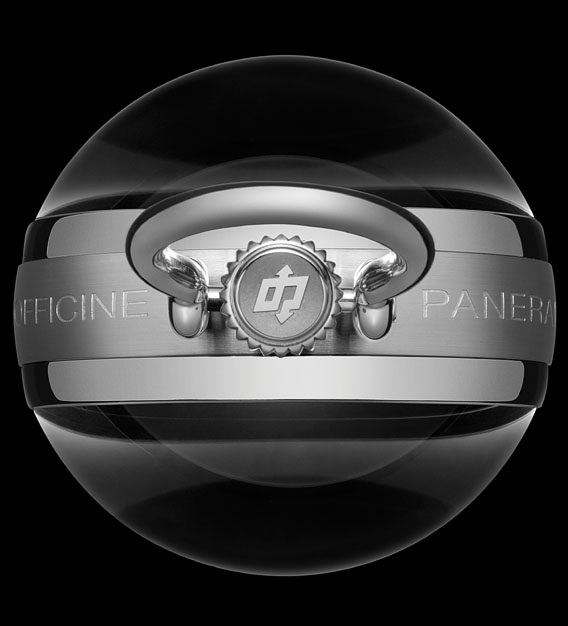Новинка имеет круглый корпус, изготовленный из нержавеющей стали, диаметром 65,0 мм. Крупная рифленая заводная головка, расположенная на 12 часах, она прикрывается подвижной скобой из полированной нержавеющей стали. Циферблат матово-черного цвета, выполнен в тиле "сэндвич", с вырезанными арабскими цифрами и часовыми индексами, сквозь которые просматривается подложка, состоящая из люминесцентного состава светло-коричневого цвета. Такое-же люминесцентное покрытие имеется и на стрелках. Спереди и сзади часы защищены двумя минеральными стеклами сферической формы. Основанием для корпуса служит круглая подставка из нержавеющей стали с выгравированным наименованием бренда Officine Panerai.