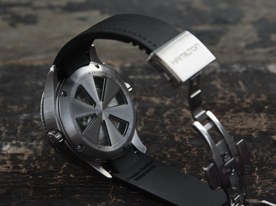 Внутри мы имеем хорошо известный калибр H21 (модифицированный Valjoux 7750).