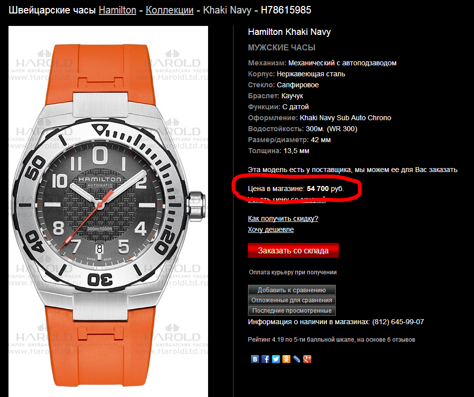 Водозащита: 300 метров / завинчивающаяся заводная головка