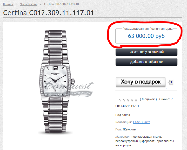 Дополнительное описание: http://www.conquest-watches.ru/catal...certina/50763/