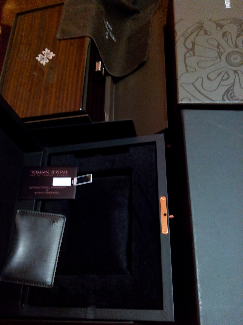 RomainJerome коробка "нового образца" была в комплекте с часами 2014 года, в комплекте идет пустая (НЕЗАПОЛНЕННАЯ) флеш-карта с возможностью уточнения и указания всех необходимых данных о часах(референс, модель, номер и тд и тп)