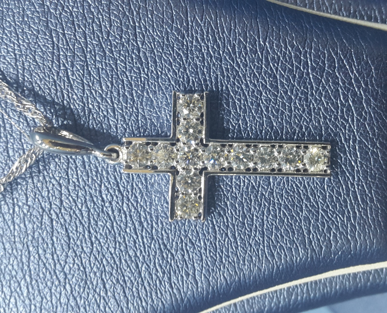 Подвеска КРЕСТ белое золото, 12 бриллиантов 1,4ct